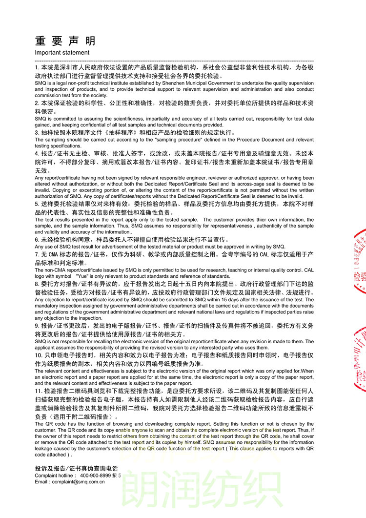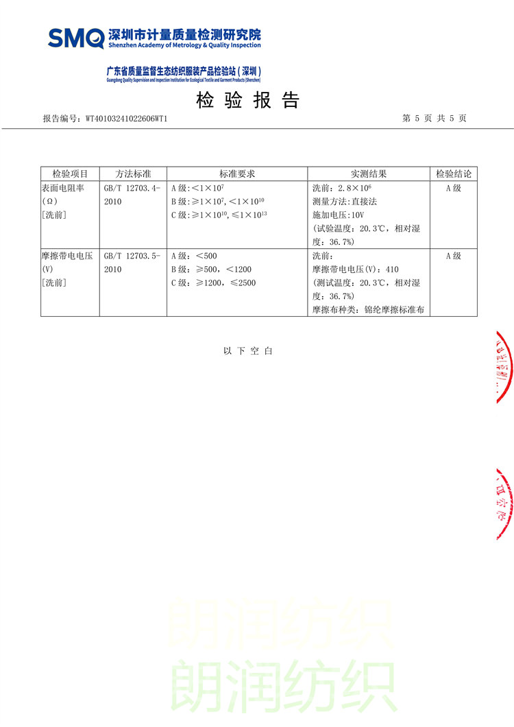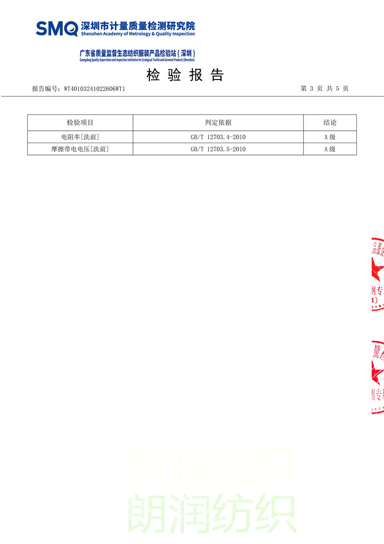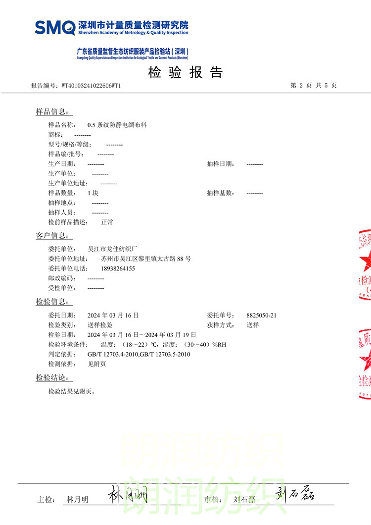 0.5条纹防静电绸布料-检验报告