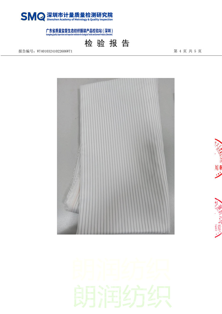 大类0.5条纹防静电绸布料-检验报告
